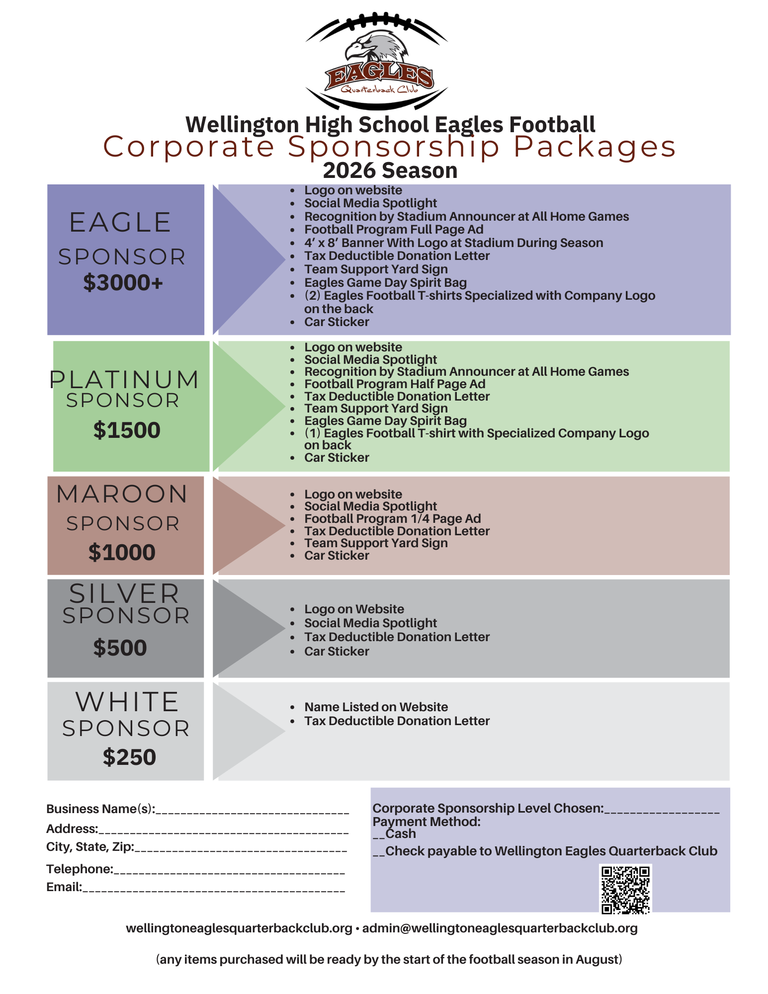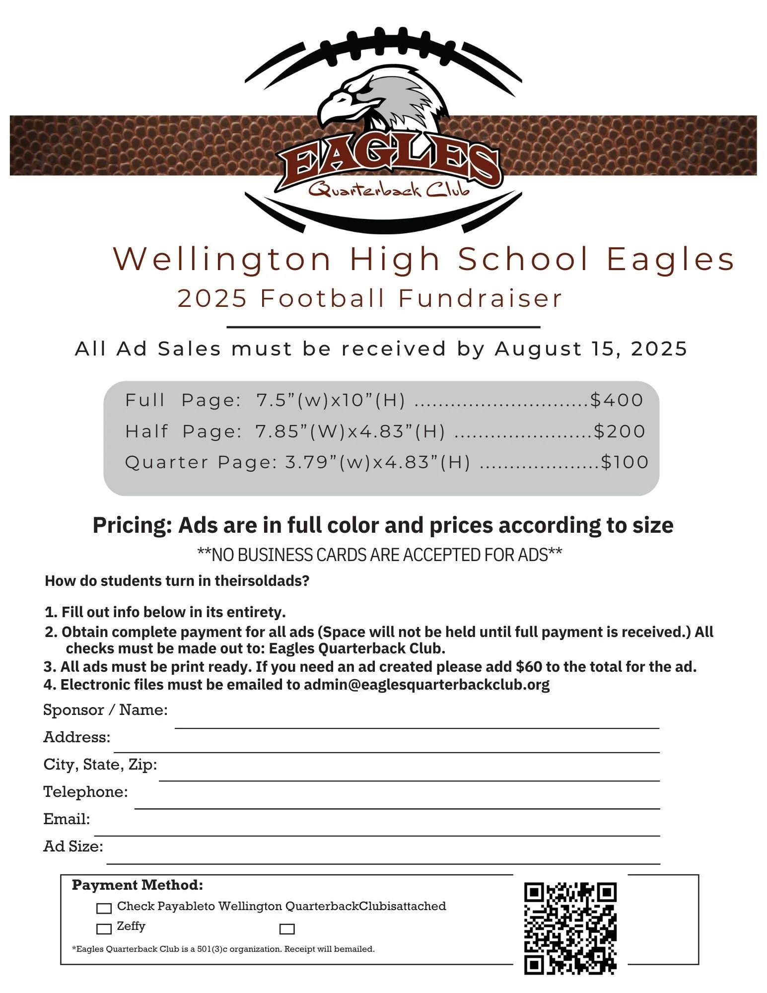 The Eagles Quarterback Club is a 501(c)3 organization developed to raise money and funds for the Wellington Eagles Football program. Find out more below…