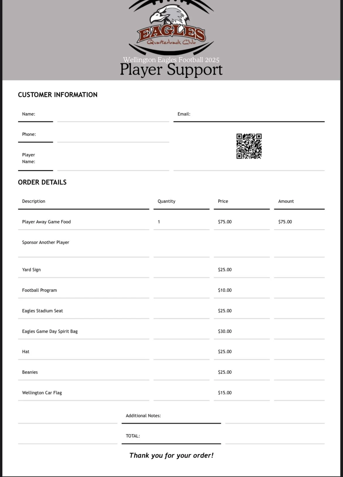The Eagles Quarterback Club is asking for help again this year. We have Player Support Dues starting at $75. The Player Support Dues includes food and snacks for the players when games are away.